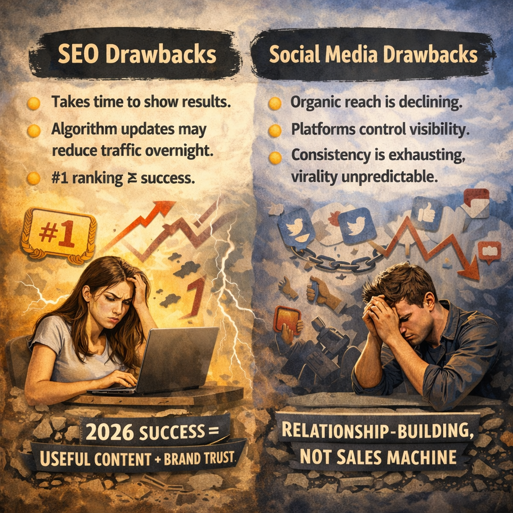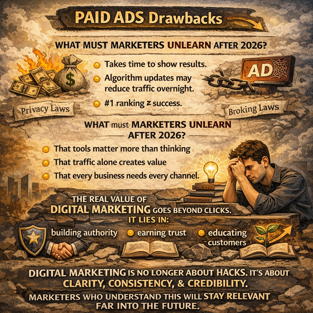 The Real Drawbacks of SEO, Social Media, and Paid Ads (And What Marketers Must Unlearn After 2026)
